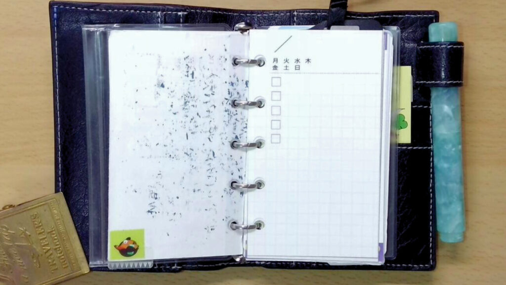 M5サイズで小さいとはいえ、しっかりとシステム手帳。リフィルを選べばマンスリーに予定も書けるし、デイリーのタスクも、メモやその他見返したいものでも、色々と収納することができます。