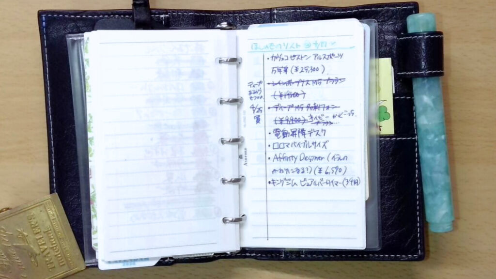アシュフォードの普通の罫線リフィルを欲しいものリストややりたいことリストのようにして記載しています。