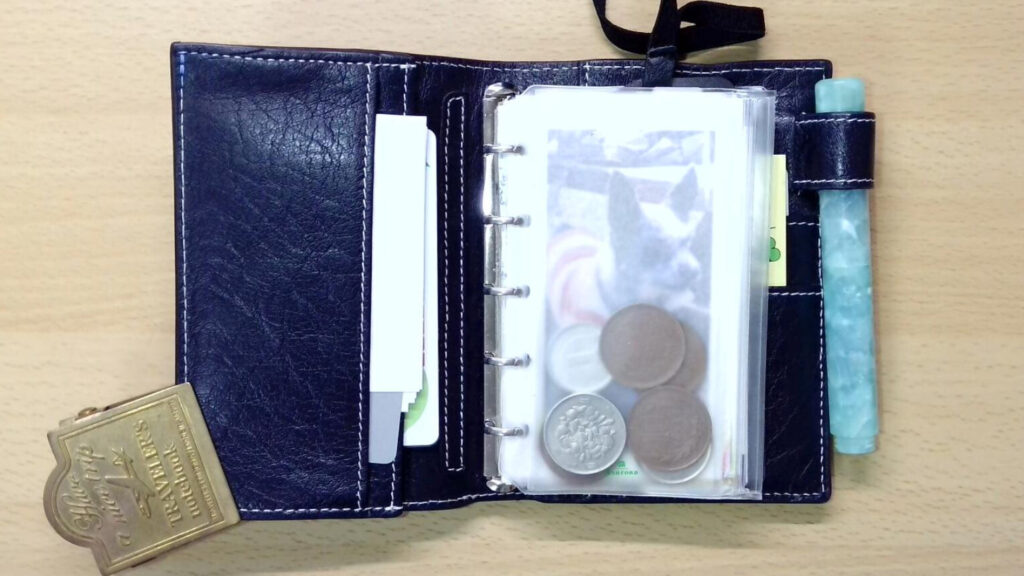 小銭入れと自作のディバイダーをめくった所にデイリーのタスクやメモ等を記載する用のリフィルを何枚か入れています。