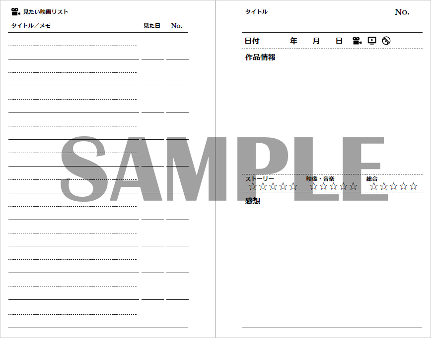 映画のウォッチリストと、感想ログがセットになったリフィルです。