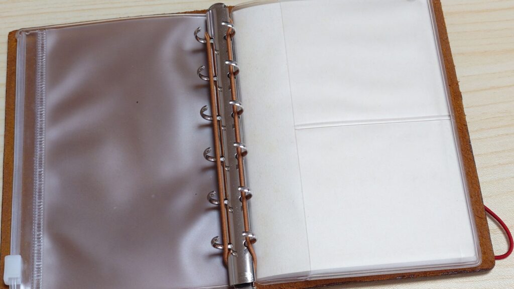 マイサイズバインダーとかAmazonで安く売っているクリアバインダーとかを試しに買ってみるのもいいですが、トラベラーズノートで作るとやっぱり持っている時の満足感が違うような気がしますね…!